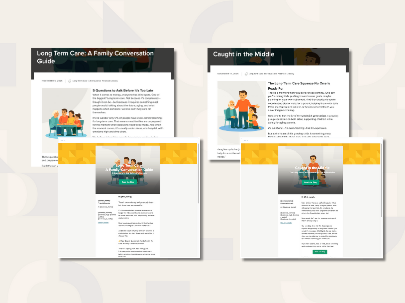 Wenn es ein Thema gibt, bei dem Familien verzweifelt nach Rat suchen, aber selten wissen, wie sie anfangen sollen, darüber zu sprechen, dann ist es die Langzeitpflege. Der Bedarf steigt, die Kosten steigen, und die Verwirrung darüber nimmt zu. Deshalb haben wir für Sie gebrauchsfertige Blogs und E-Mail-Vorlagen zum Thema Langzeitpflege erstellt.
